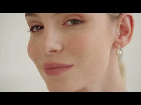 Composée d’un collier doré et de boucles d’oreilles assorties, elle combine la brillance des cristaux de zircone cubique à la douceur intemporelle des perles polies à la main.