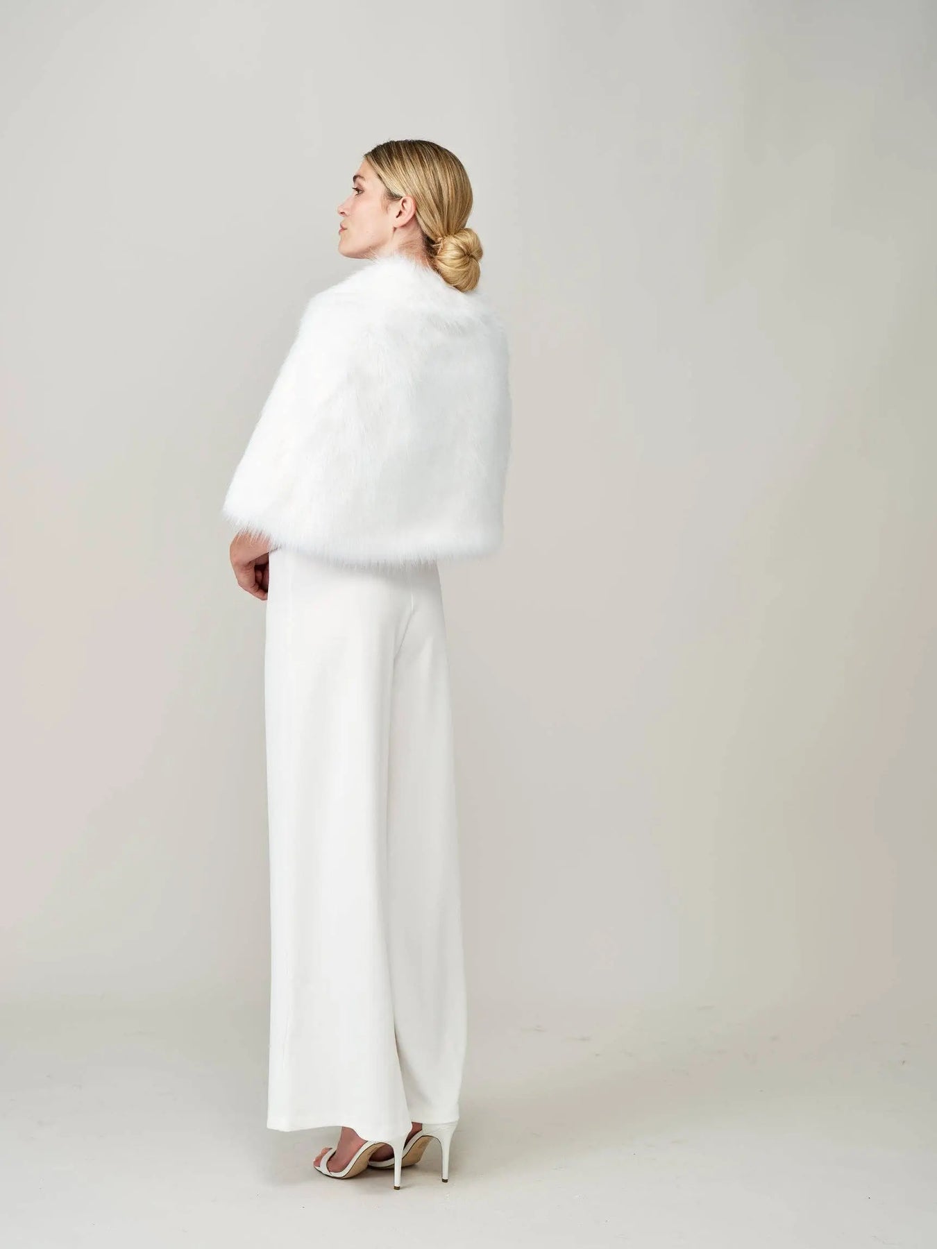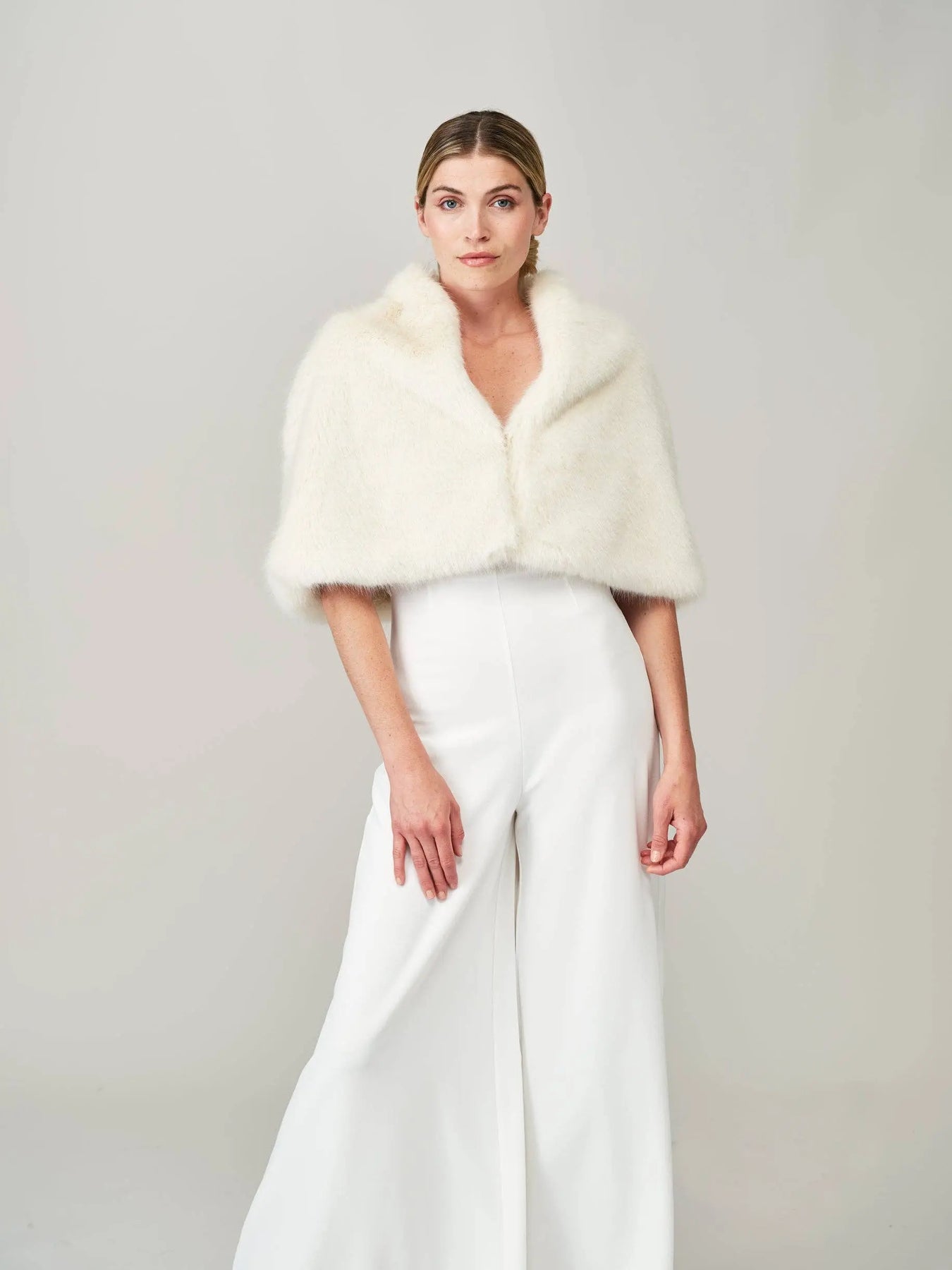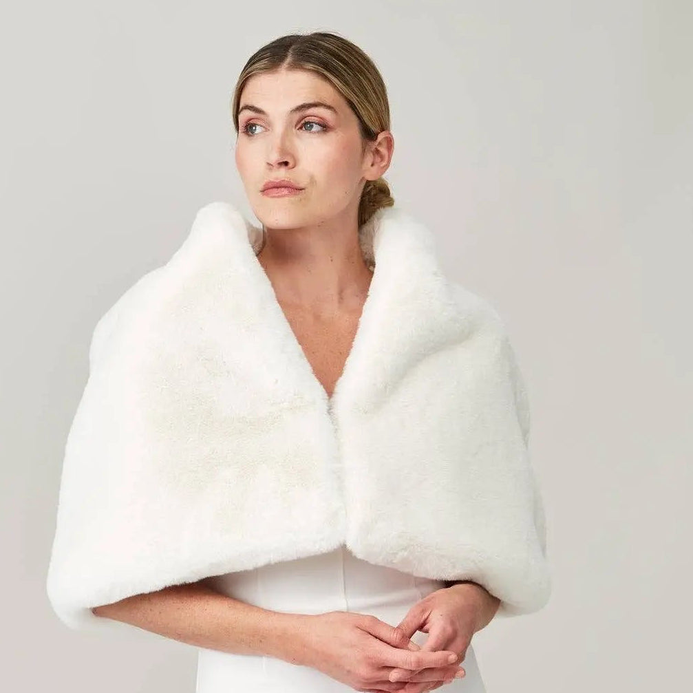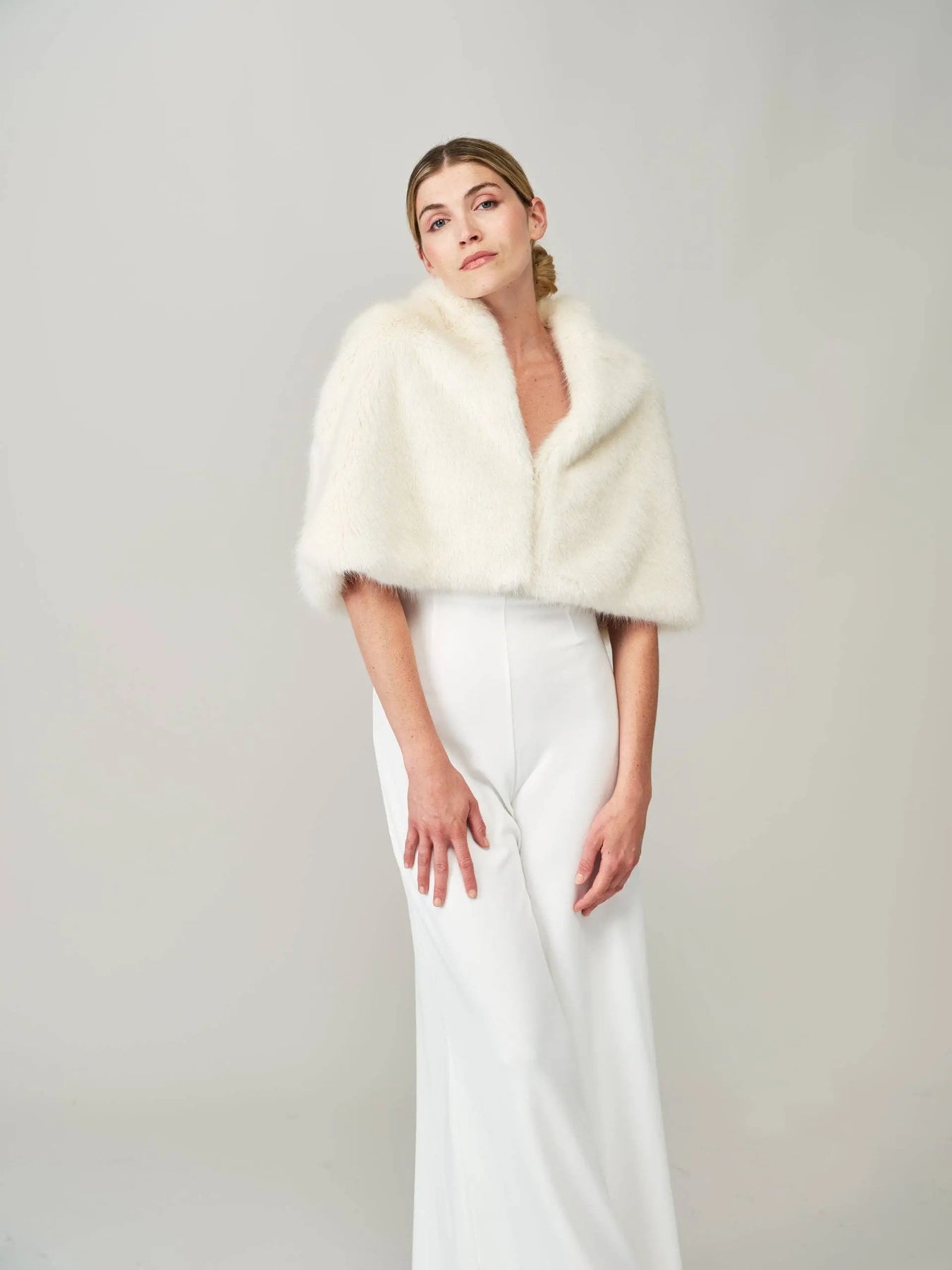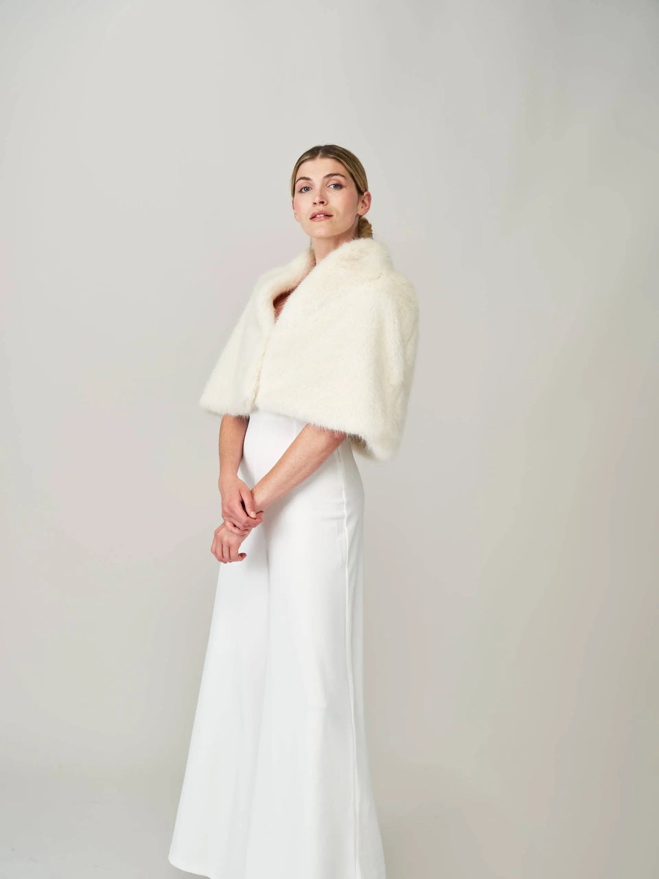 CAPE COURTE DE MARIÉE EN FAUSSE FOURRURE ERMINE BLANCHE IVOIRE