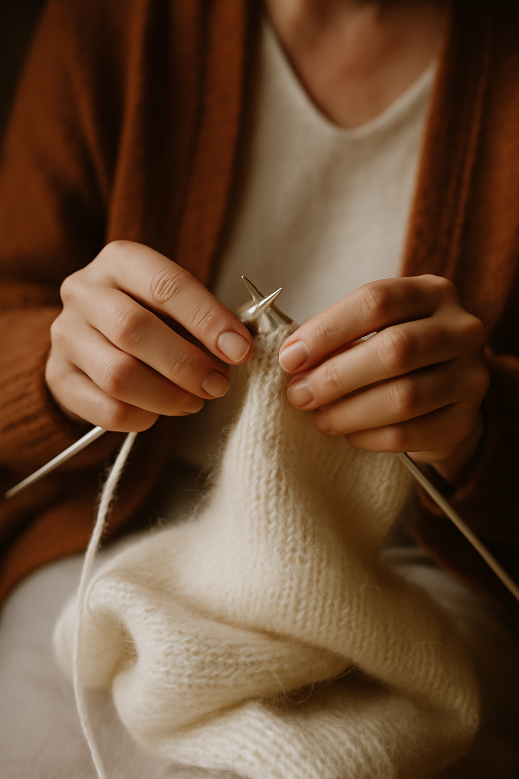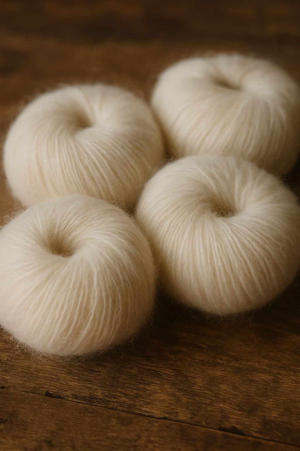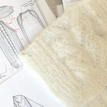 Chaque étole Olivia est tricotée à la main en France dans un point ajouré inspiré de la dentelle, avec un fil d’angora d’exception sélectionné pour sa douceur et son confort thermique.