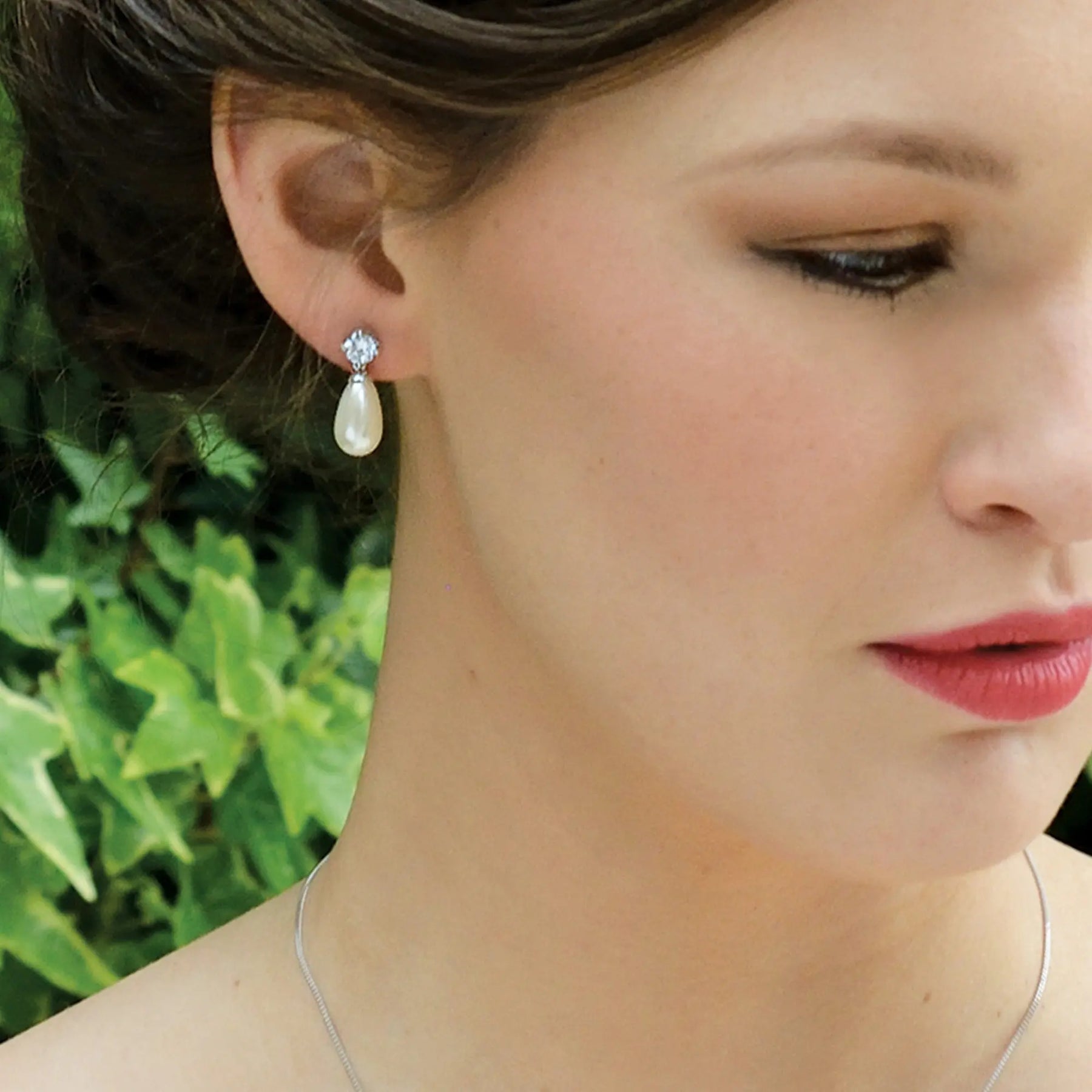 BOUCLES D’OREILLES IMPERIAL PEARL – GOUTTE CRISTAL & PERLE | RHODIUM
