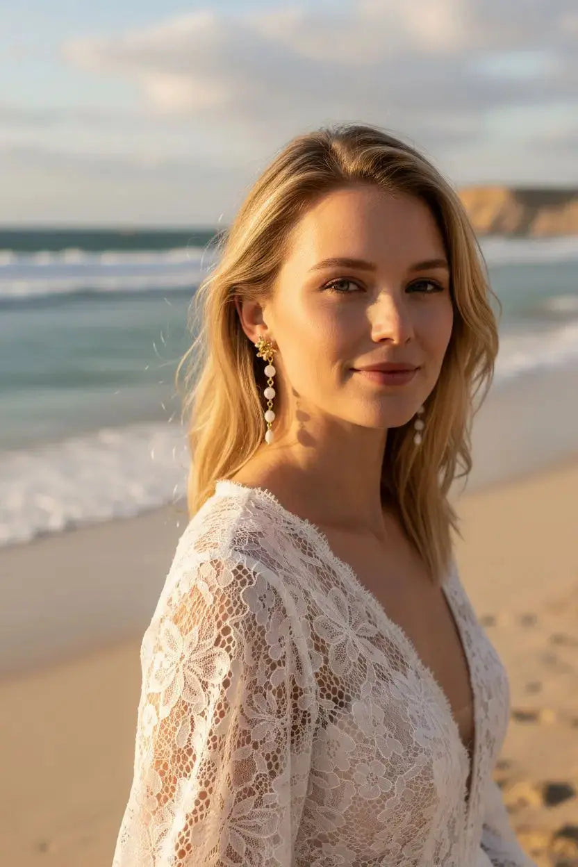 Les pendantes LOANA s’adressent aux mariées en quête d’un bijou naturel, raffiné et facile à porter, qui sublime la tenue sans jamais en faire trop. Un choix idéal pour celles qui aiment les matières authentiques et l’artisanat de qualité.
