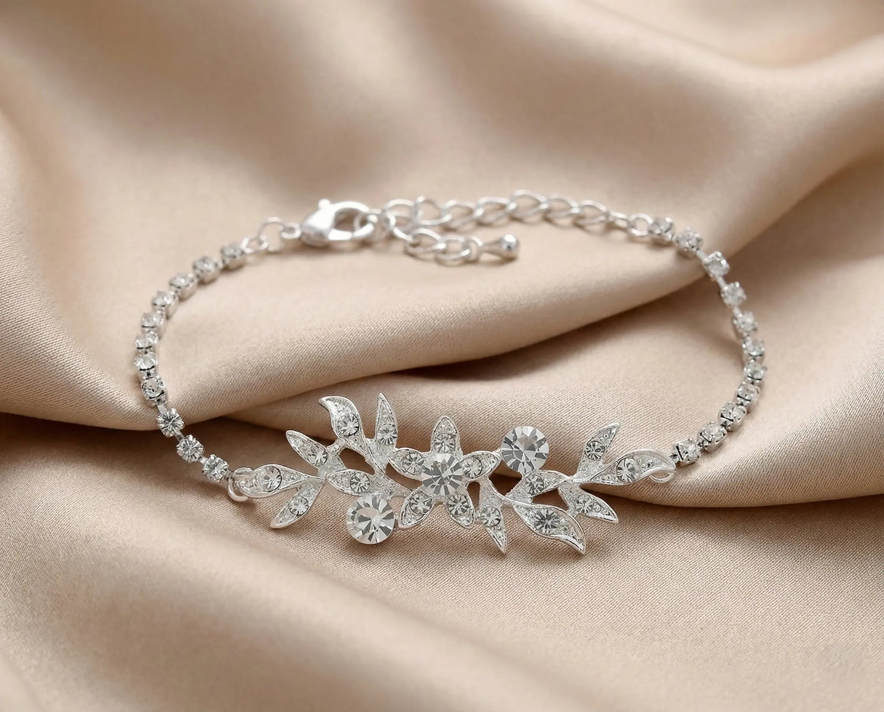 BRACELET DE MARIÉE – MOTIF FEUILLAGE & CRISTAUX – NS1-5817L
