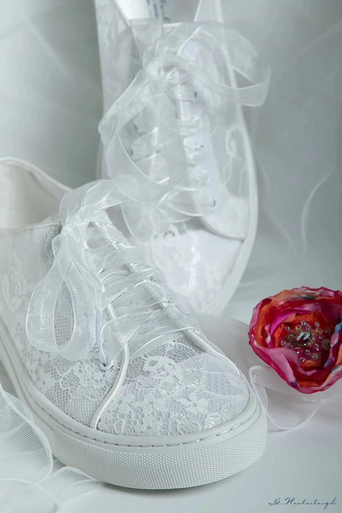 Son design raffiné laisse subtilement entrevoir le pied à travers la dentelle, apportant une touche sensuelle et délicate à la silhouette. Idéales pour un mariage bohème, champêtre ou en extérieur, les baskets Nadine offrent une alternative chic et tendance aux talons, tout en restant parfaitement élégantes.