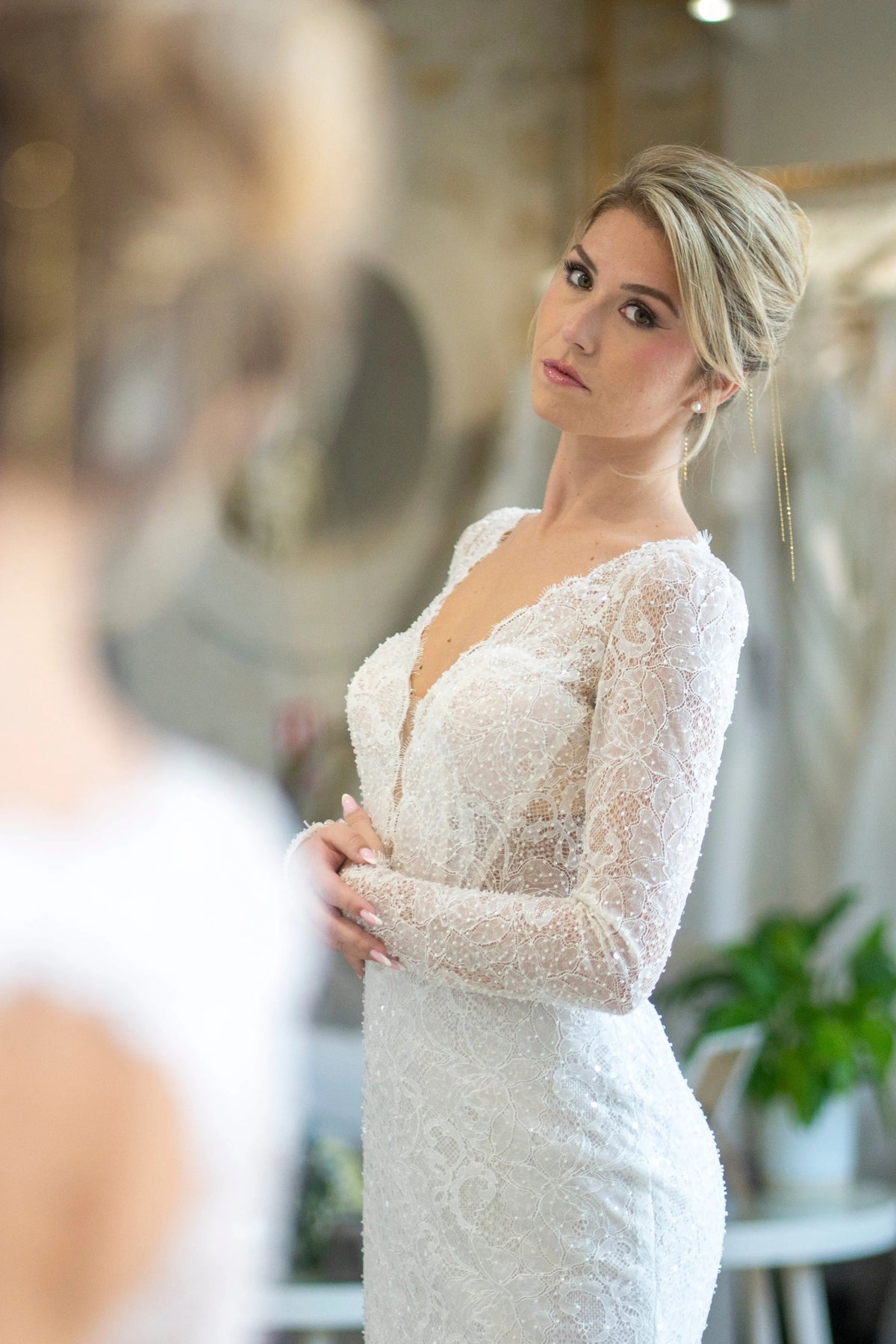 Chaque détail a été imaginé pour créer une allure à la fois moderne et intemporelle, parfaite pour une mariée en quête d’élégance pure.
