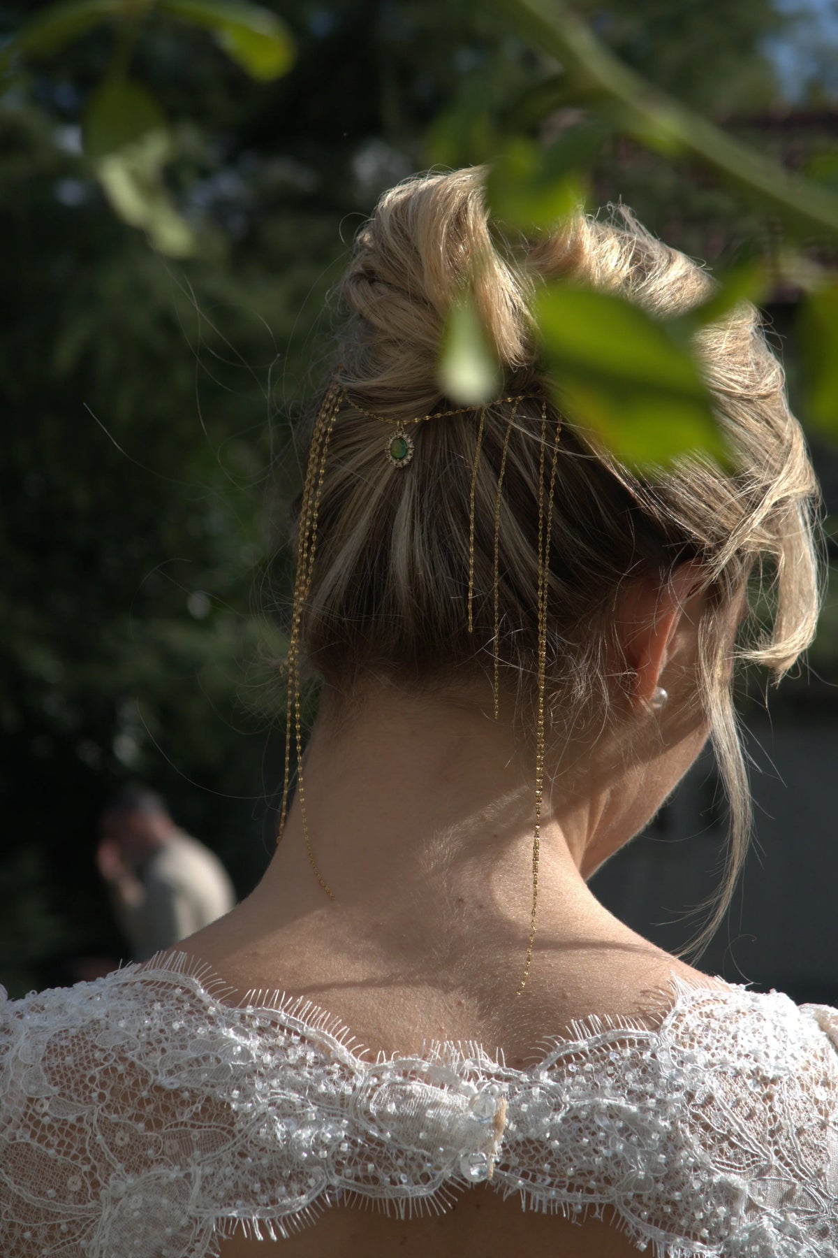 - Un bijou délicat qui habille la coiffure d’un éclat doré