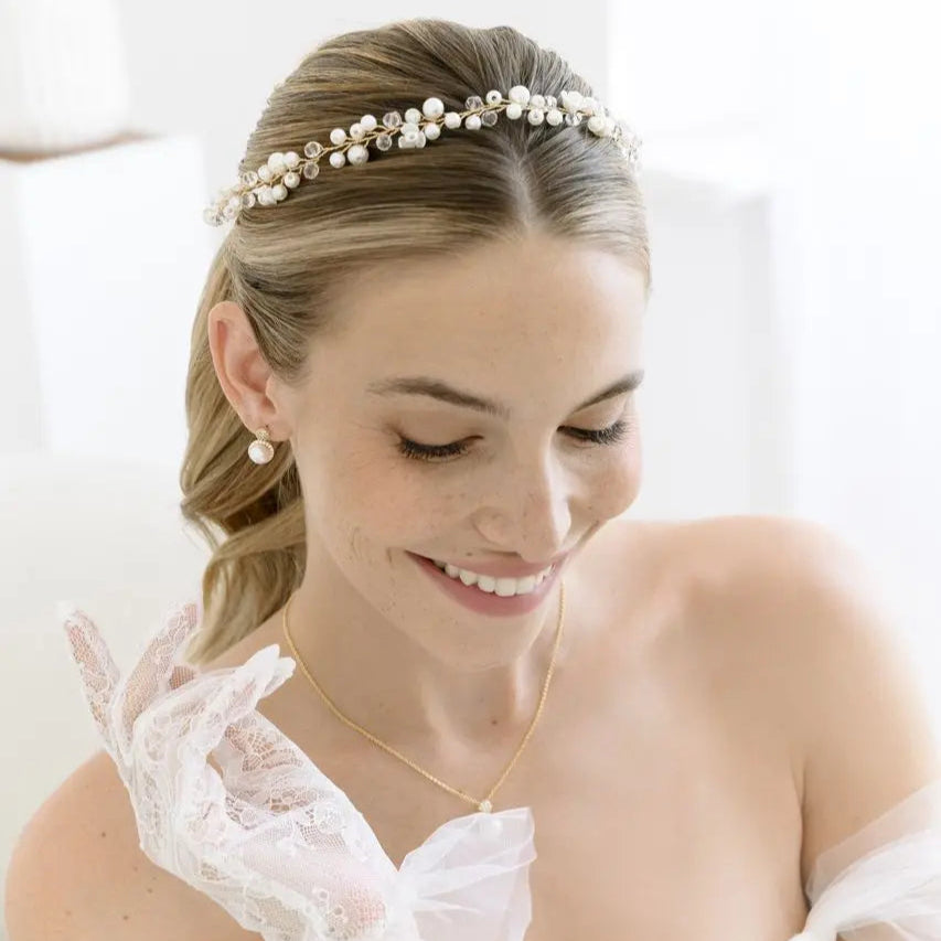 Parce qu’elle apporte une touche romantique et poétique à toutes les coiffures de mariée, sans jamais en faire trop. Que vous ayez choisi une robe bohème, glamour ou classique, cette pièce délicate vient souligner le visage et la chevelure avec subtilité.