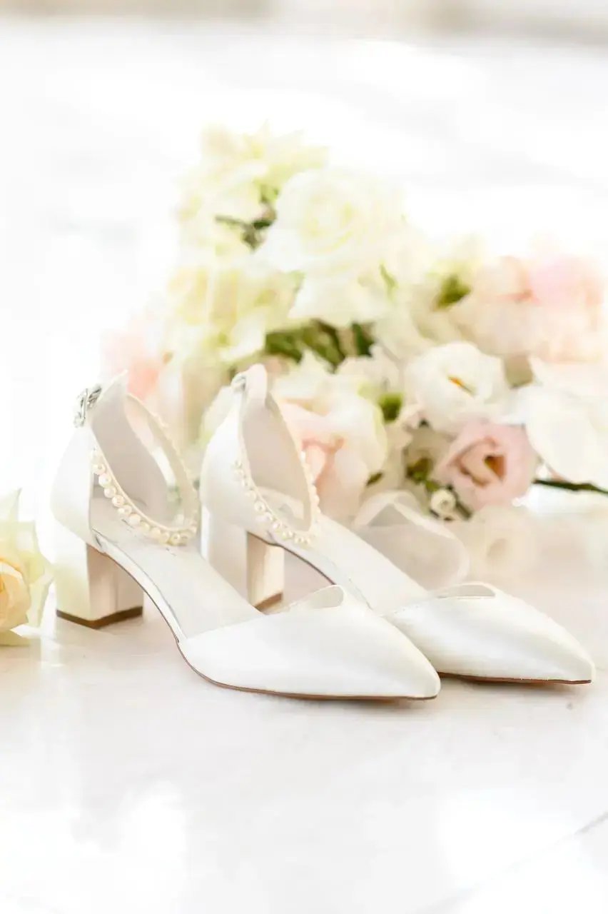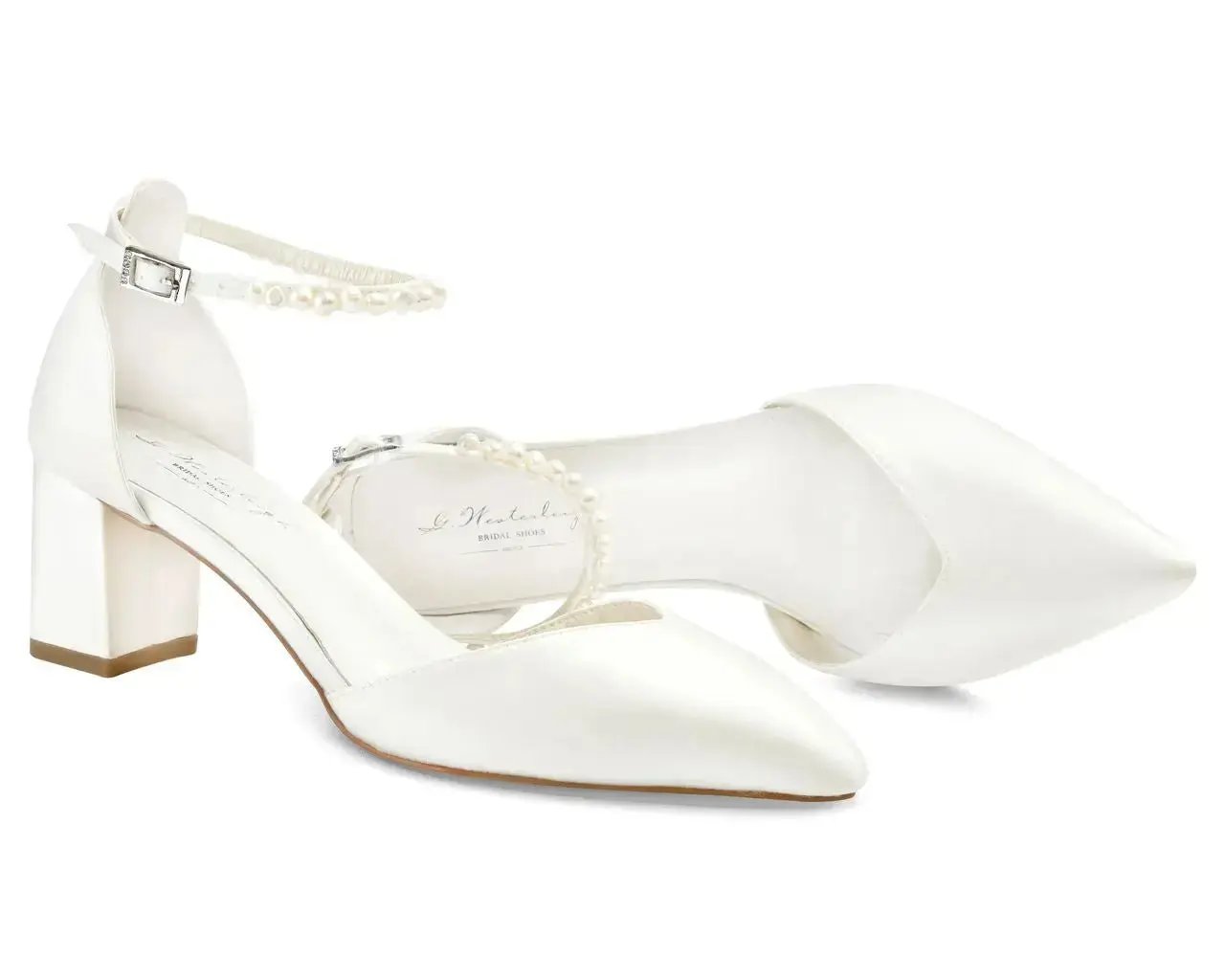 CHAUSSURES DE MARIÉE MADISON AVEC BRIDE EN PERLES D’EAU DOUCE – SATIN IVOIRE
