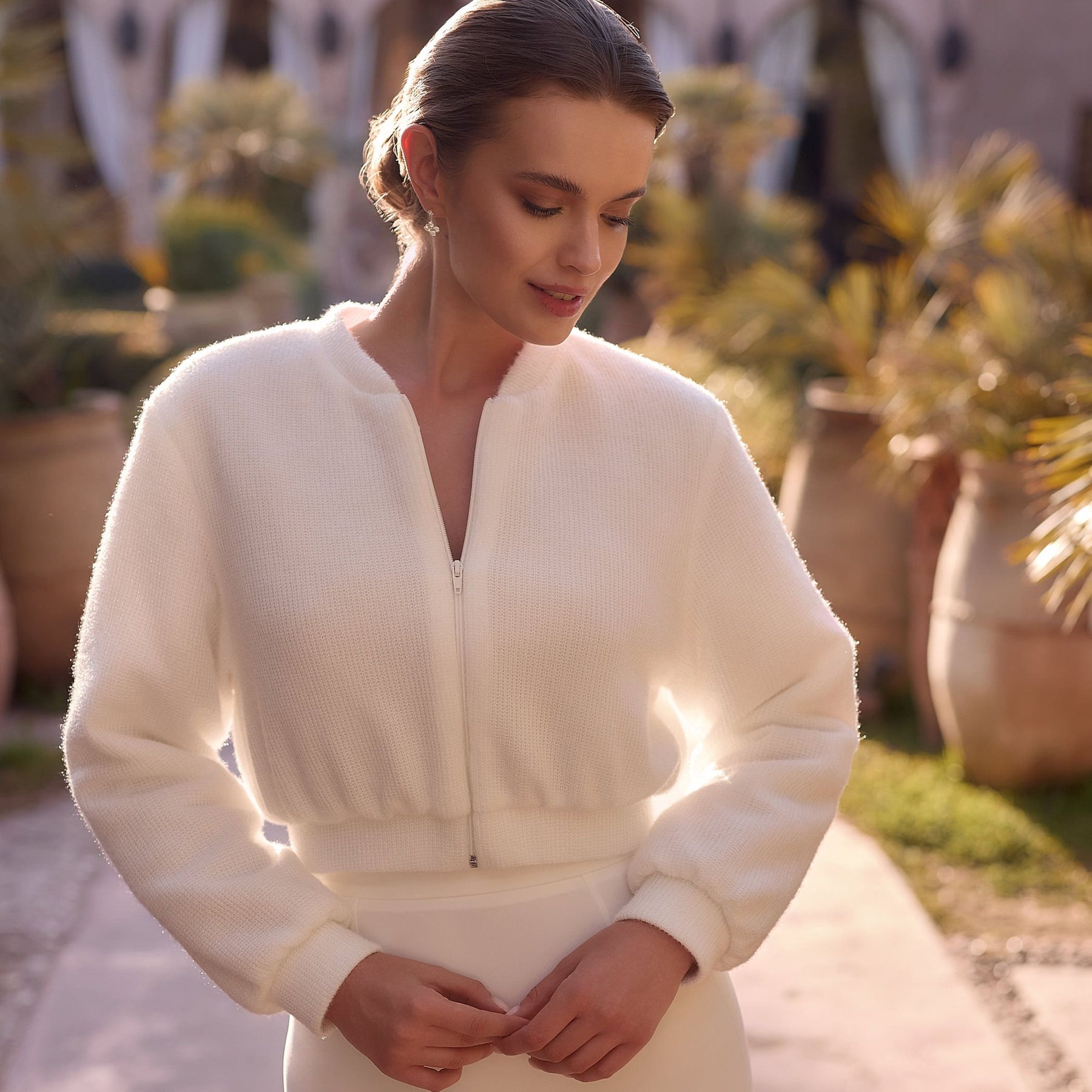 E497 – VESTE DE MARIÉE TRICOTÉE EFFET CACHEMIRE | MANCHES LONGUES & ZIP AVANT