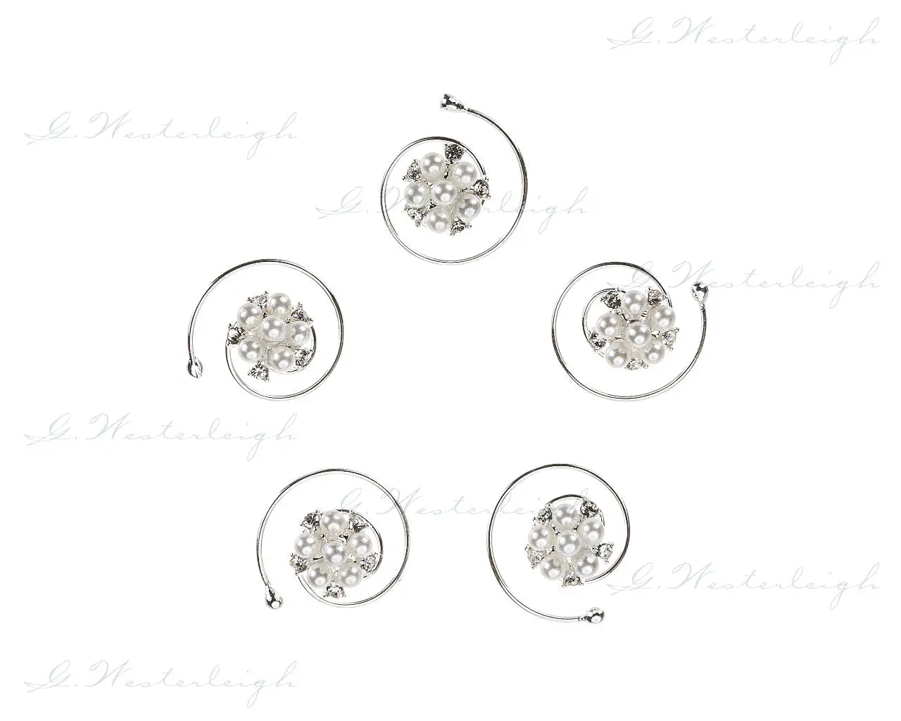 SPIRALES CHEVEUX MARIEE PERLES CRISTAUX LOT 5 CURLIES — SL1660