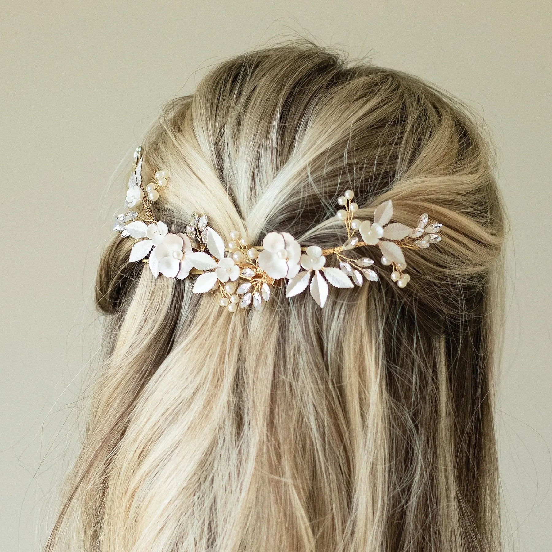 Chaque pièce est façonnée avec soin dans les ateliers d’Ivory & Co, où la fabrication artisanale confère à chaque bijou un caractère unique. Parfaite pour les mariées bohèmes, les demoiselles d’honneur ou les invitée élégantes, la pince Éclat de Fleurs incarne la fraîcheur printanière et la lumière du grand jour.